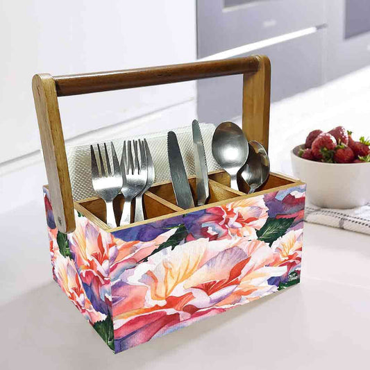 Wooden Tissue and Cutlery Holder for kitchen Organizer With Handle - Hibiscus