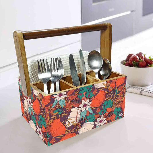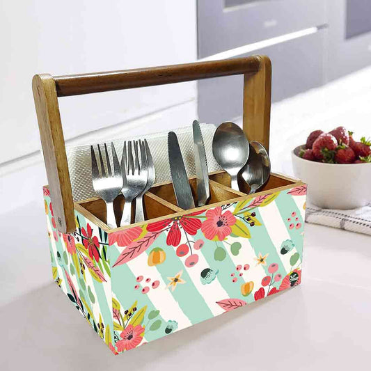 Cutlery Holder for Table Stand With Handle Spoons Napkin Organizer - Floral