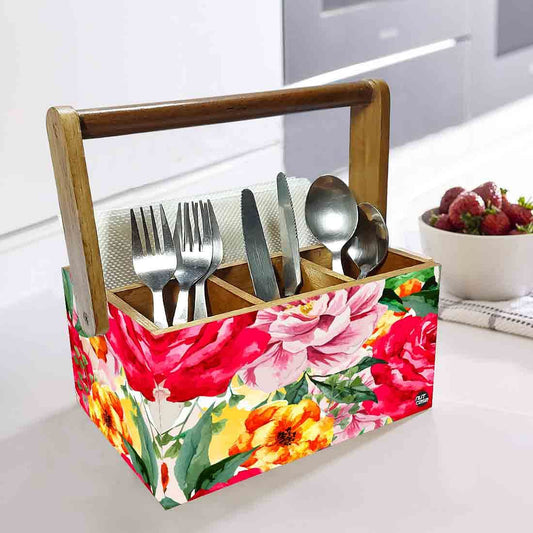 Kitchen Cutlery Holder for Dining Table Organizer Spoons - Red Rose