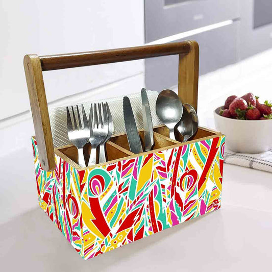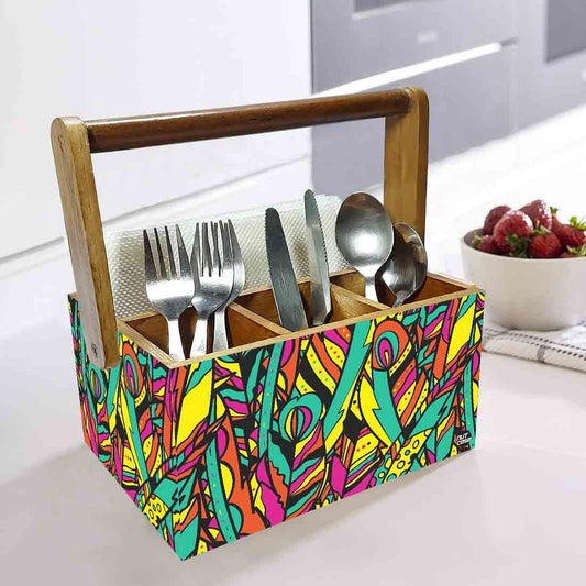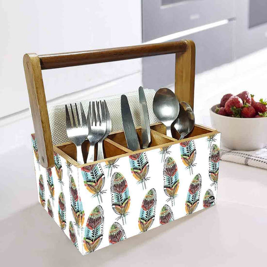 Wooden Cutlery Stand for Dining Table with Handle - Multicolor Feathers