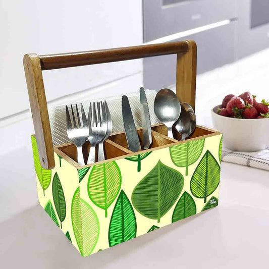 Cutlery Stand Holder for Dining Table Spoons Napkin Organizer - Green Leaves