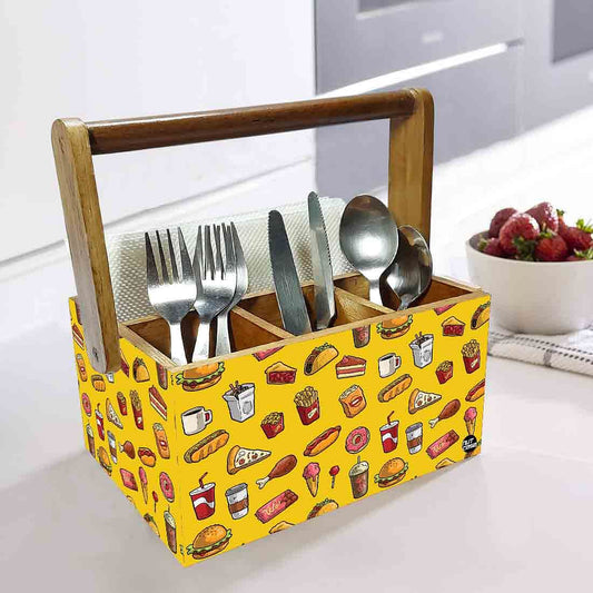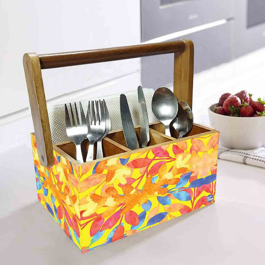 Wooden Silverware Caddy for Restaurant Cutlery Holder With Handle - Yellow Flower