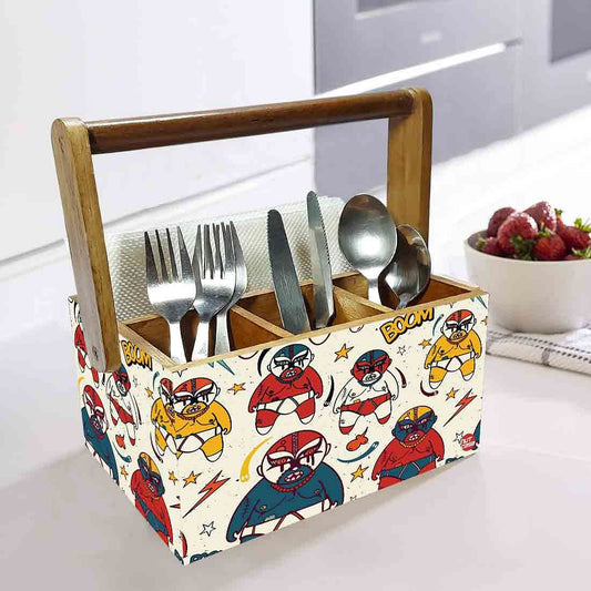 Tissue and Cutlery Holder for kitchen Organizer With Handle - Box Pattern