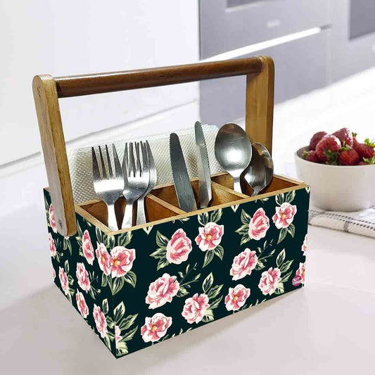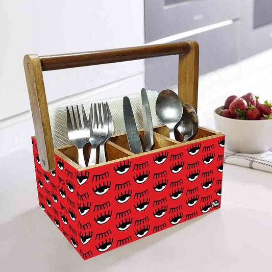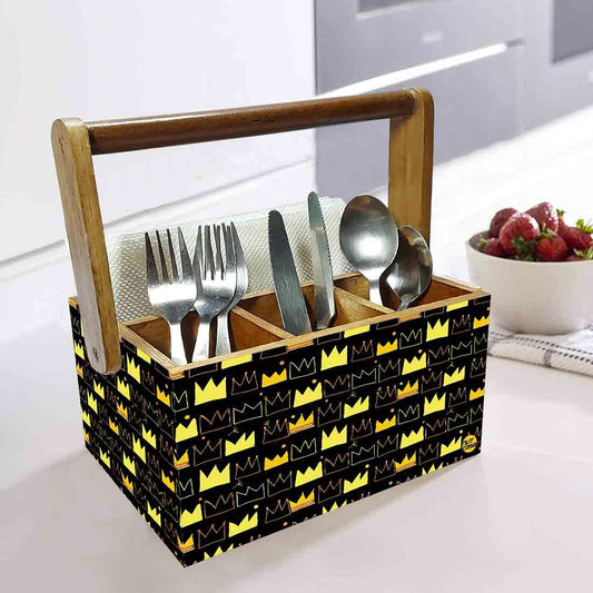 Cutlery Holder for Dining Table With Handle Wooden Organizer - Crown