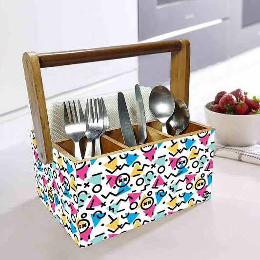 Small Spoon and Fork Holder for Restaurant With Handle - Geometrical Signs