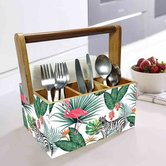 Cutlery Holder Stand With Handle for Kitchen Spoons Organizer - Zebra