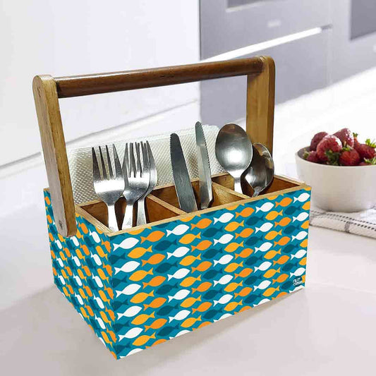 Cutlery Holder Cafe With Handle Forks Spoons Tissue Organizer - Fishes