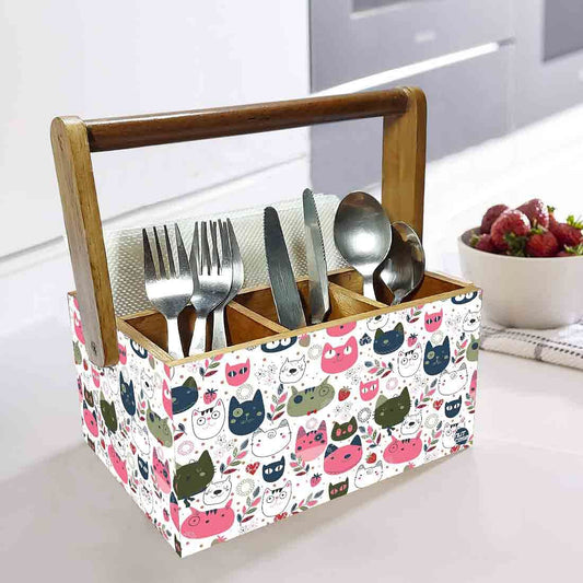 Wooden Spoon Stand for Dining Table Fancy Cutlery Holder With Handle - Cats
