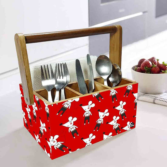 Cafe Cutlery Holder With Handle for Spoons Knives Tissue Organizer - Cool Micky