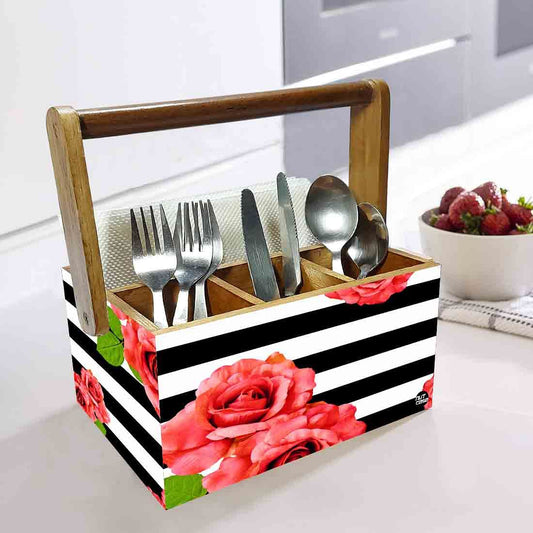 Restaurant Silverware Holder With Handle for Spoons Forks Knives Tissue - Floral Strips
