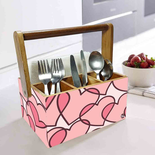 Wooden Cutlery Holder With Handle for Kitchen Storage - Pink Heart