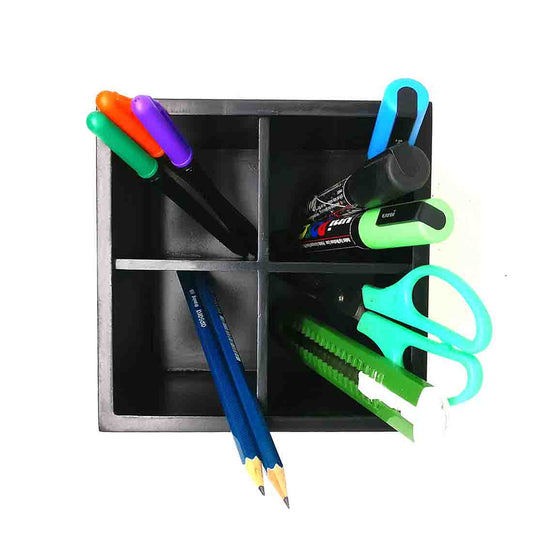 Organize your stationery with style with our multi-functional 4 slot wooden storage box! Made out of high quality engineered wood with the design on all 4 sides.It is ideal for both home and office use. It can be used to store items such as pens, pencils, remote controllers, mobiles and etc. The possibilities are endless!