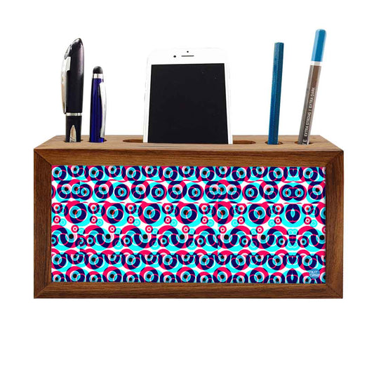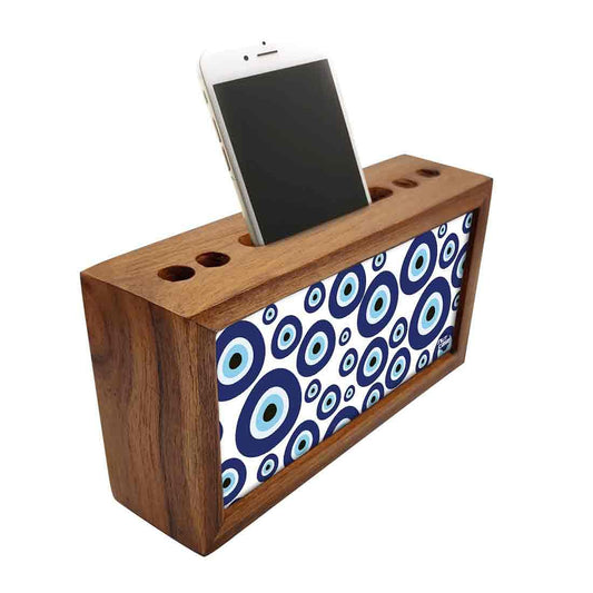 Wooden Pen Stand with Mobile Holder Desk Organizer for Office - Evil Eye Protector-