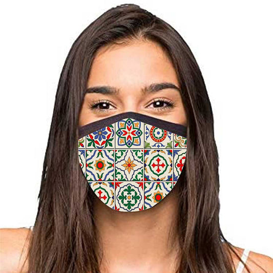 Face Masks Reusable Washable Set Of 2 -Spanish_tiles_red
