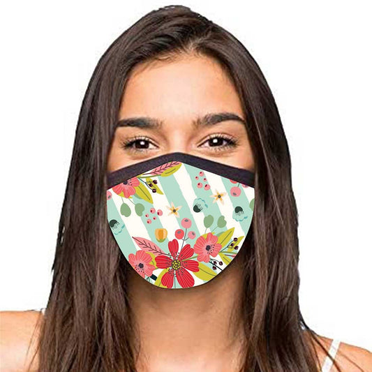 Face Masks Reusable Washable Set Of 2 -Floral_stripes