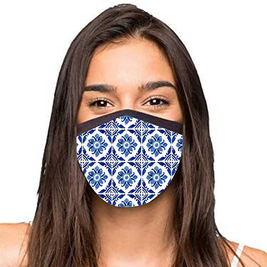 Face Masks Reusable Washable Set Of 2 -Spanish_tiles_blue