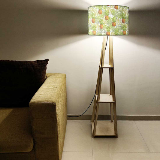 Wooden Shelf Tripod Floor Lamp for Bedroom