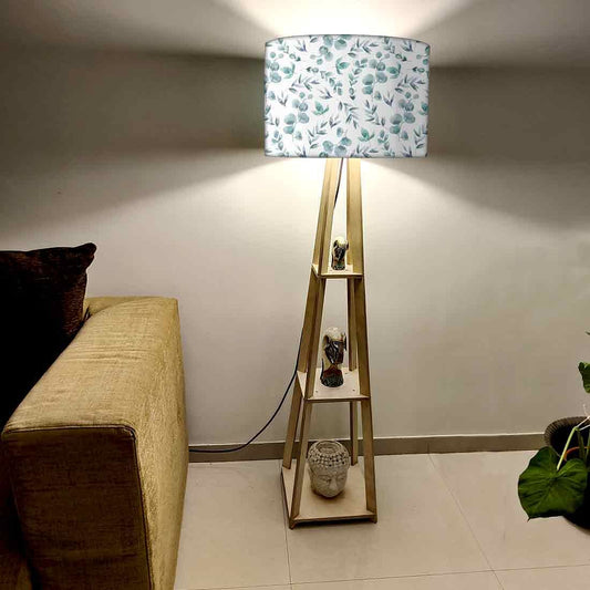 Designer Wooden Tripod Floor Lamp with Shelf for Living Room - Evil Eye Protector