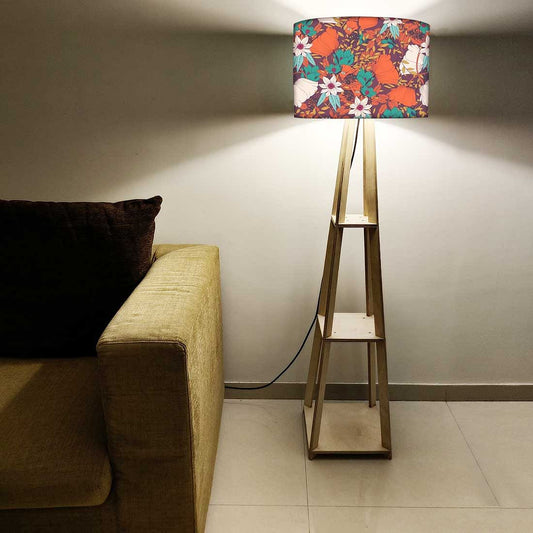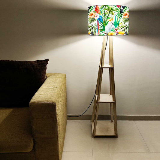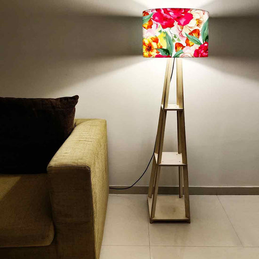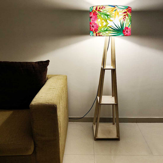 Wooden Floor Standing Lamp for Hall - Floral Colors