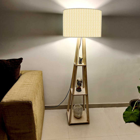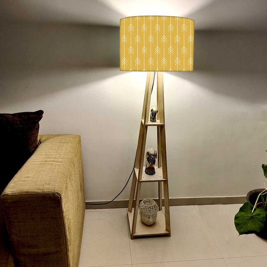Yellow Wooden Floor Lamps with Shelf for Bedroom
