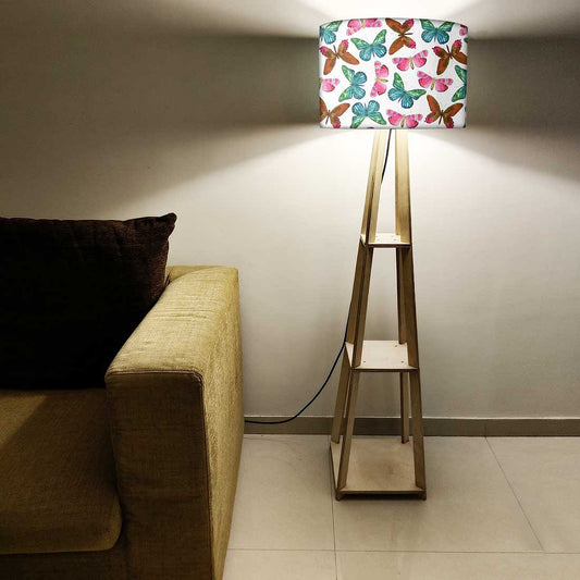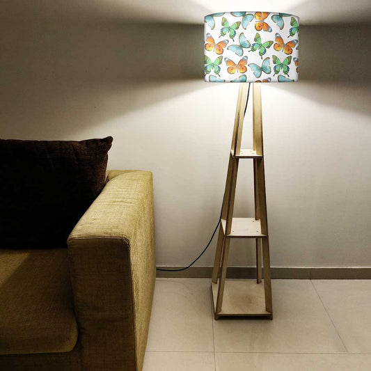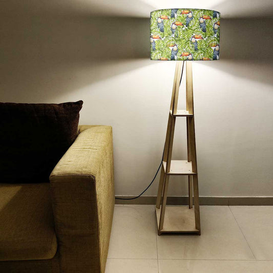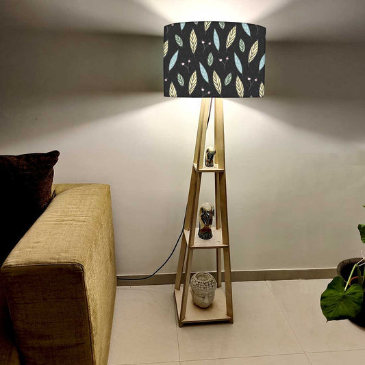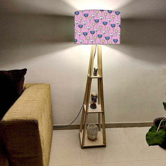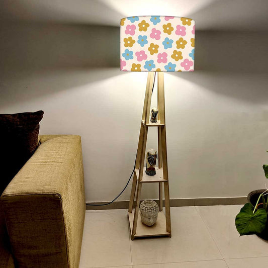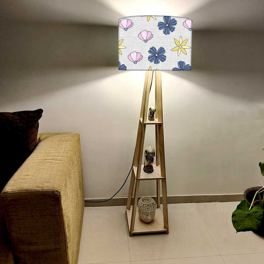 Wooden Corner Floor Lamp with Shelf - Sweet Flowers
