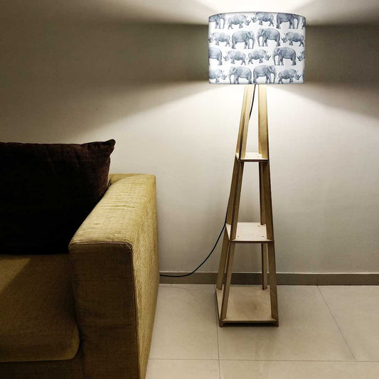 Wooden Shelf Tall Lamps for Living Room - Elephants