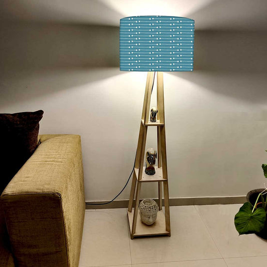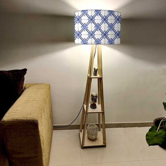 Tripod Floor Lamps for Living Room with Shelf - Blue Circles