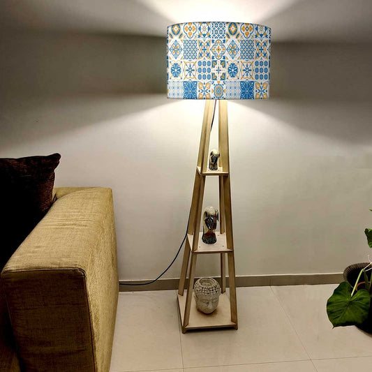 Blue Wooden Floor Lamps For Living Room - Blue Tiles