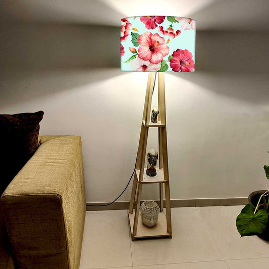 Wooden Floor Lamp Decorative for Living Room - Red Hibiscus