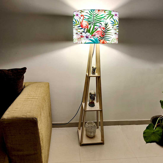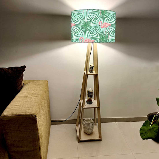 Wooden Floor Lamp for Living Room - Flamingo Green Leaves