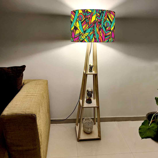 Tripod Wooden Floor Lamp with Shelves - Geometric