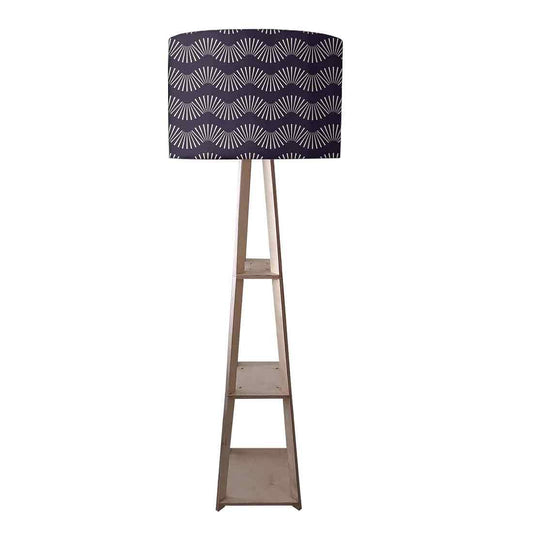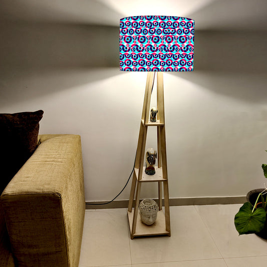 Wooden Floor Lamp with Shelf for Bedroom - Retro Pattern