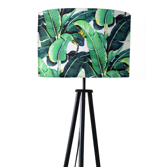Tripod Standing Floor Lamp for Bedroom - Green Leaves