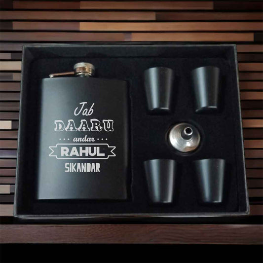 Customized Engraved Flask for Men Stainless Steel Hip Flasks - Jab Daaru Andar