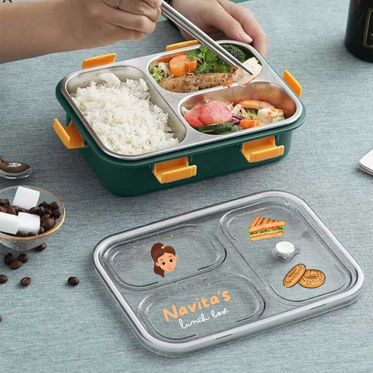 Custom Lunch Box with Name Stainless Steel Leak Proof Tiffin