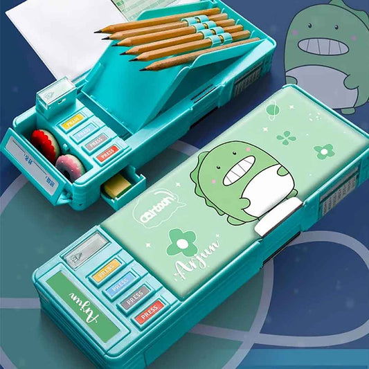 Nutcase Pencil Box with Name Switch Operated Multi-functional Compass Box for Kids with Press buttons