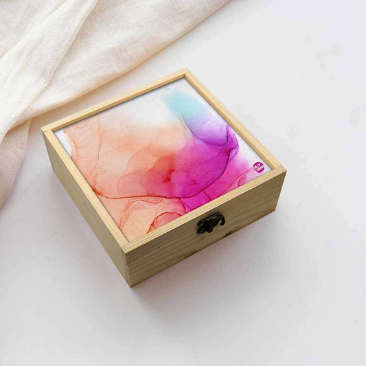 Jewellery Box Wooden Jewelry Organizer - Orange Pink Multicolor Ink Watercolor
