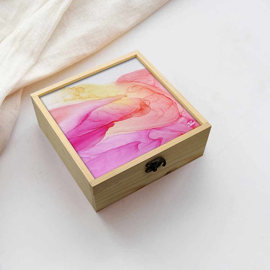 Jewellery Box Wooden Jewelry Organizer - Pink Yellow Ink Watercolor
