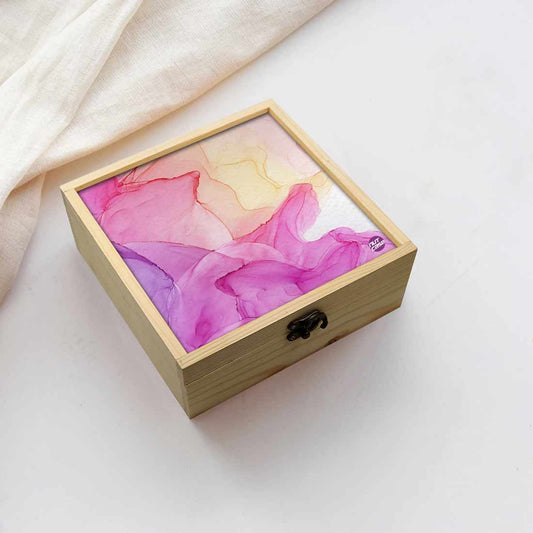 Jewellery Box Wooden Jewelry Organizer - Pink Purple Yellow Ink Watercolor