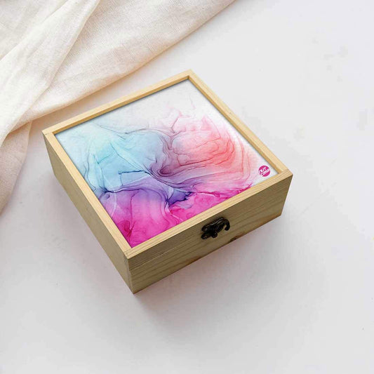 Jewellery Box Wooden Jewelry Organizer - Pink Blue Ink Watercolor