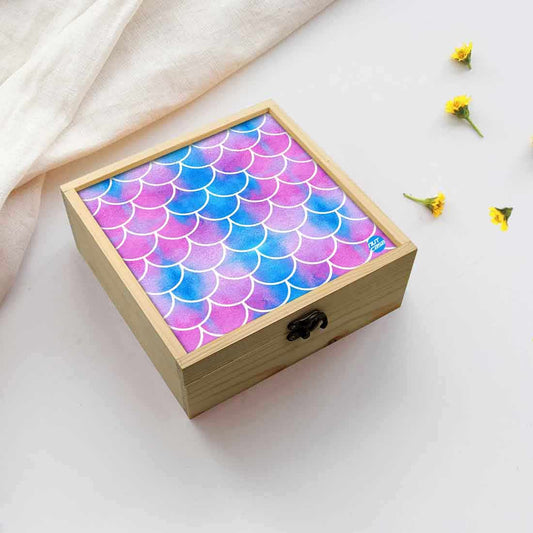 Jewellery Box Wooden Jewelry Organizer - Blue Purple Mermaid Watercolor