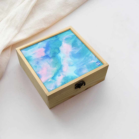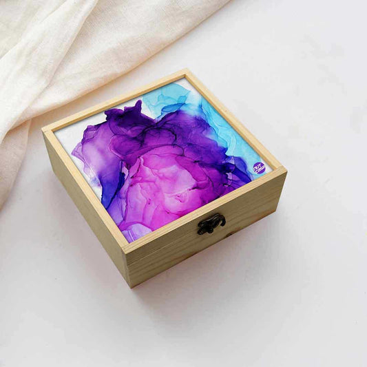 Jewellery Box Wooden Jewelry Organizer - Blue Purple Ink Watercolor