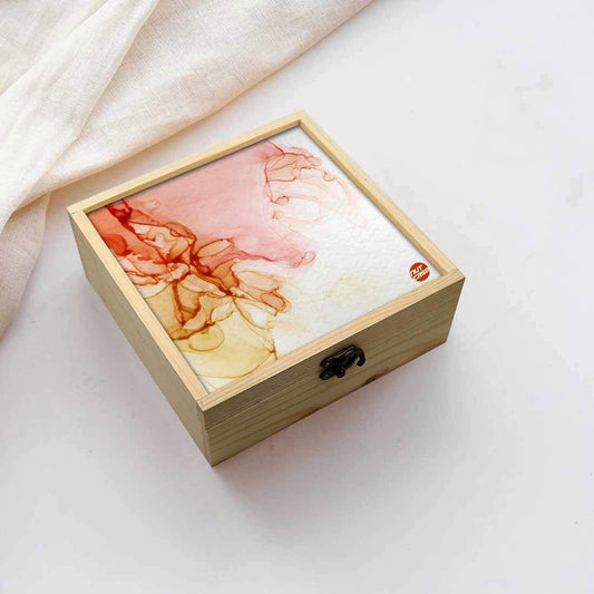 Jewellery Box Wooden Jewelry Organizer - Orange Golden Ink Watercolor