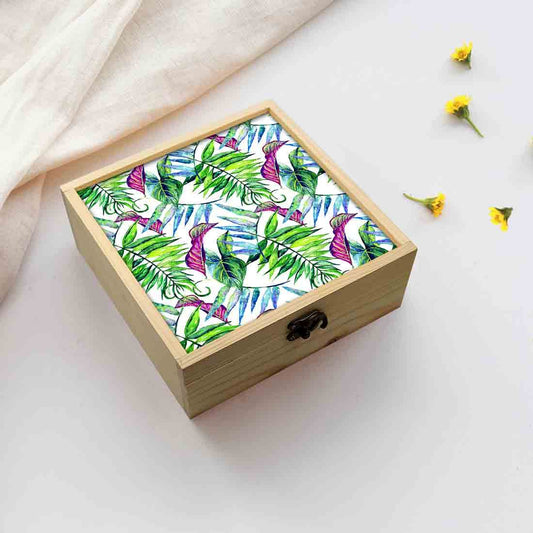 Jewellery Box Wooden Jewelry Organizer - Green And Purple Tropical Leaf