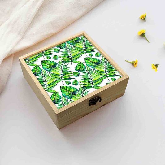 Jewellery Box Wooden Jewelry Organizer - Green Leaf