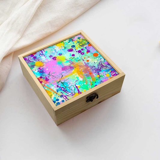 Jewellery Box Wooden Jewelry Organizer - Purple Yellow Ink Watercolor