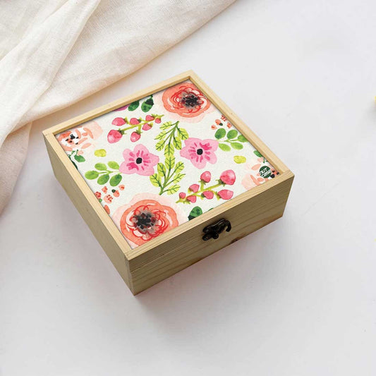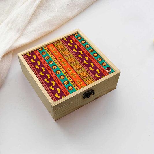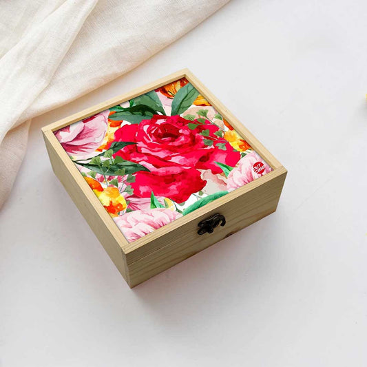 Nutcase bring you his lovely Designer digitally printed wooden lift top jewellery box has three lined sections to keep rings, bracelets and other valuables. Comes decorated with antique metal hook box latches clasp , removable pine wood separators and a beautiful Design top with colorful design elements. Ideal for gifting your girls or women, can be used as a memory box or storage box also. Made with high quality pine wood and measures 8 x 8 x 3 inches.