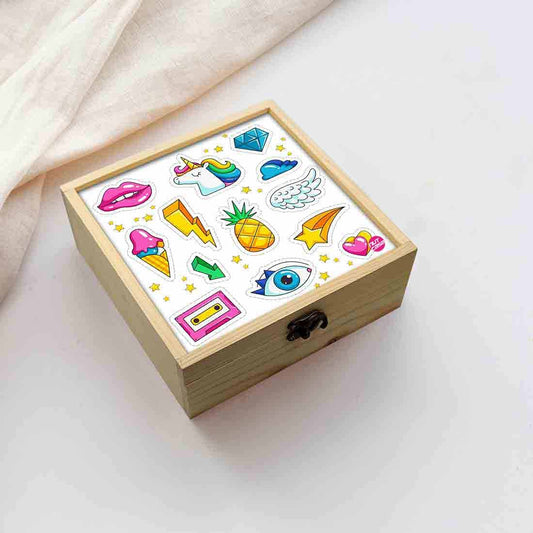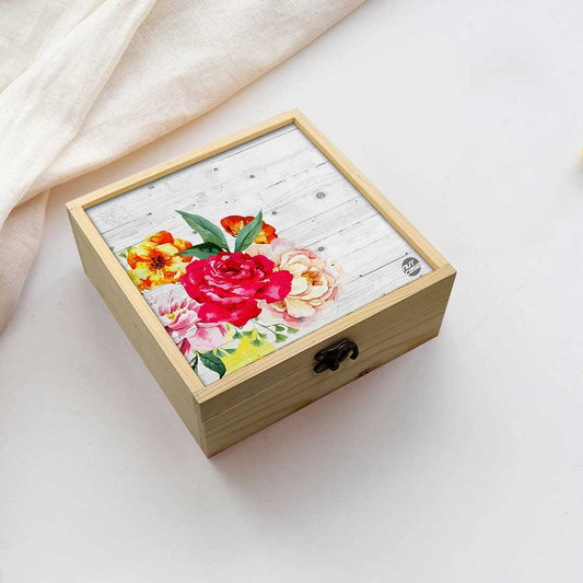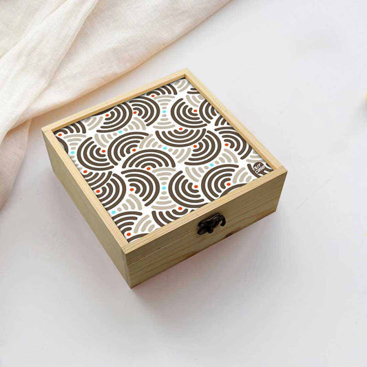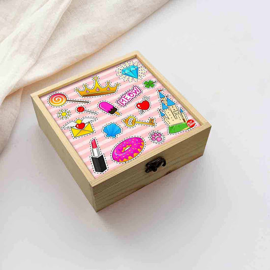 Nutcase bring you his lovely Designer digitally printed wooden lift top jewellery box has three lined sections to keep rings, bracelets and other valuables. Comes decorated with antique metal hook box latches clasp , removable pine wood separators and a beautiful Design top with colorful design elements. Ideal for gifting your girls or women, can be used as a memory box or storage box also. Made with high quality pine wood and measures 8 x 8 x 3 inches.