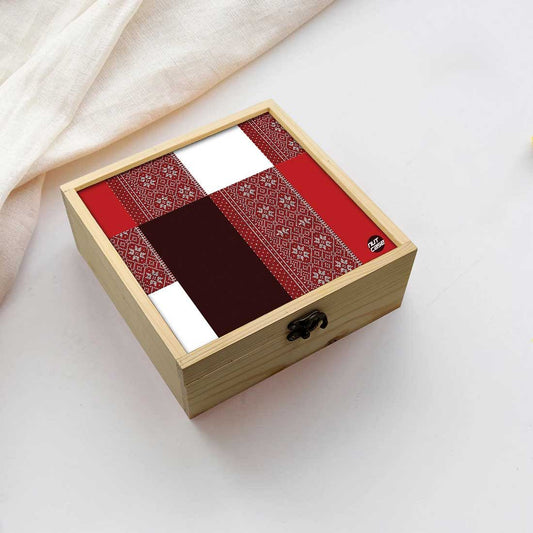 Jewellery Box Makepup Organizer - Indian Fabric Patterns Red