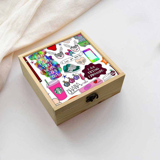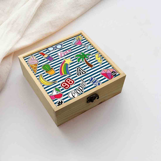 Nutcase bring you his lovely Designer digitally printed wooden lift top jewellery box has three lined sections to keep rings, bracelets and other valuables. Comes decorated with antique metal hook box latches clasp , removable pine wood separators and a beautiful Design top with colorful design elements. Ideal for gifting your girls or women, can be used as a memory box or storage box also. Made with high quality pine wood and measures 8 x 8 x 3 inches.